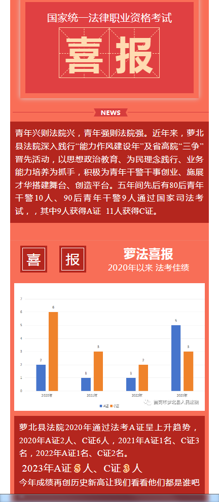 “三争”晋先 | 喜报!“5A+3C”萝北法院法考再创佳绩