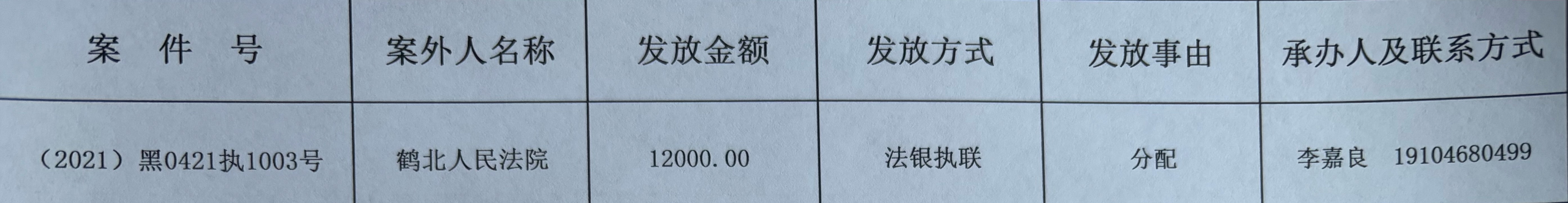萝北县人民法院关于向案外人发放执行案款的公示(2025年第12期) 发布时间:2025-12-06 11:06:36
